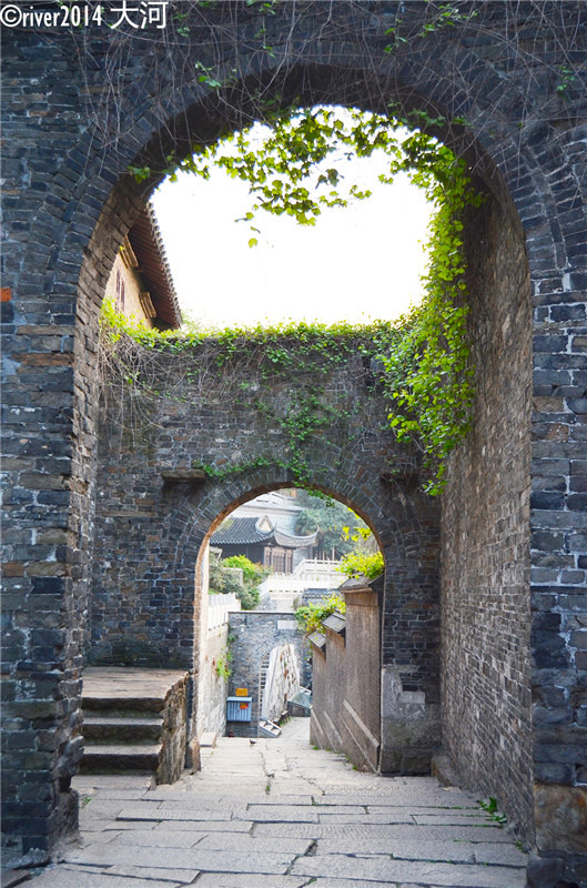 城墙是明朝修建的,当时是沿江防护要地。如今城内早已是高楼林立。