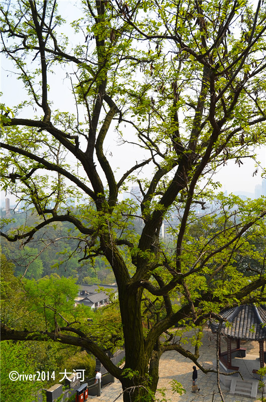 山顶的一株大树,枝叶繁茂,怕是生长了上百年。