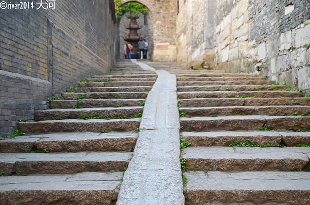 台阶中间有一条凹槽,这是给当时的独轮车专用的,设计十分贴心。