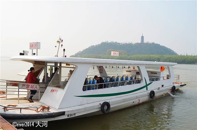 刚进入景区就赶上一班渡船开出,几分钟就到了焦山,山顶的万佛塔是焦山的标志。