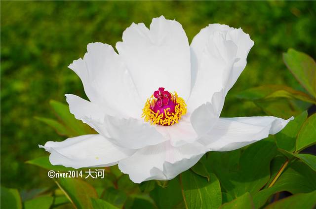 素雅的白牡丹并不多见,绿叶,白色的花瓣,红黄的花蕊,色彩极为丰富。