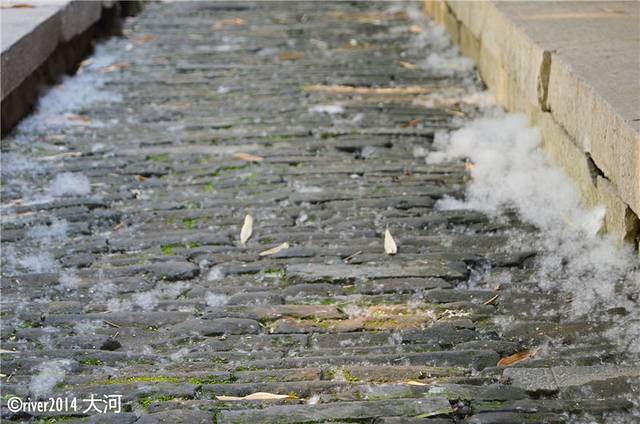 又到了柳絮纷飞的季节,行宫内的小路无人打扫,杨柳絮如残雪般堆积。