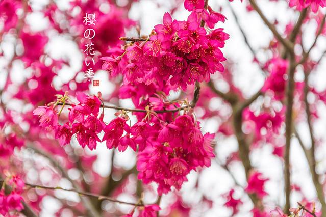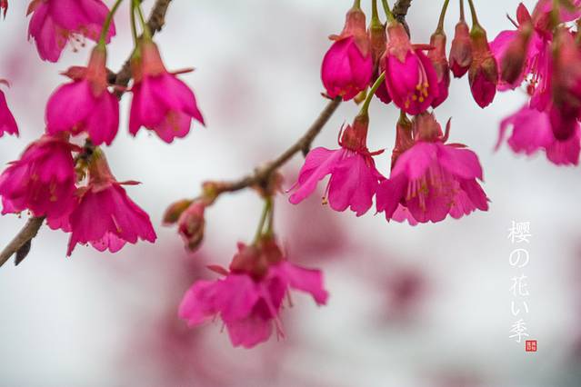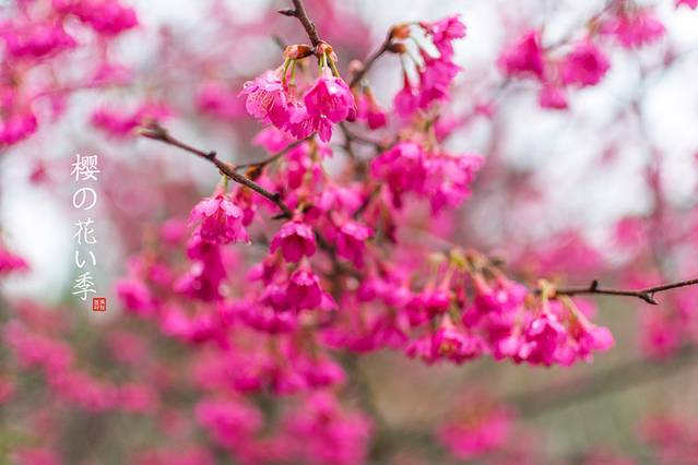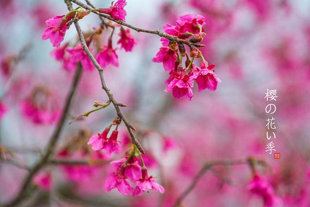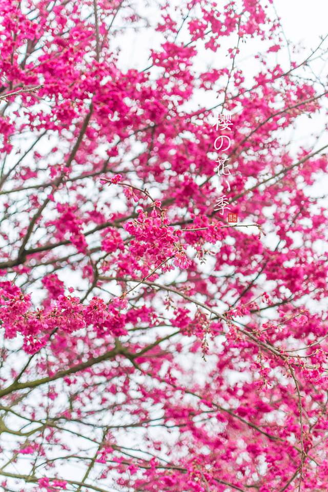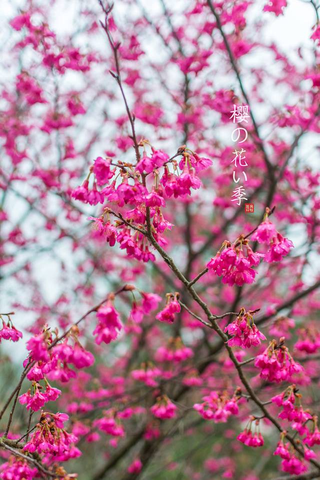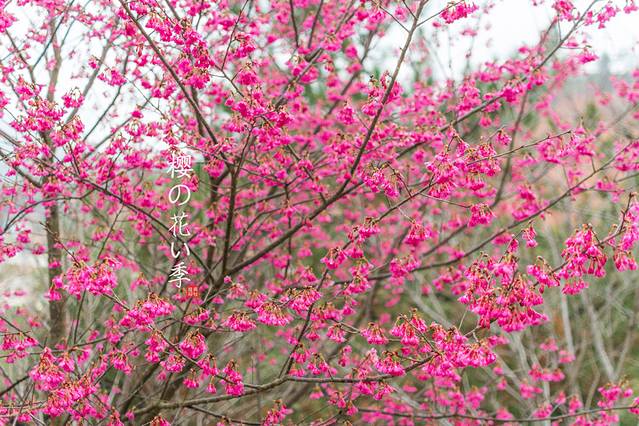 第一波盛开的主要是红色的绯寒缨、中国红、雾色樱、八重樱、牡丹樱;第二波盛开的主要是粉色的云南樱和白色的染井吉野樱;第三波盛开的将是粉色的松月樱、关山樱、普贤象樱、御帝吉野樱等。