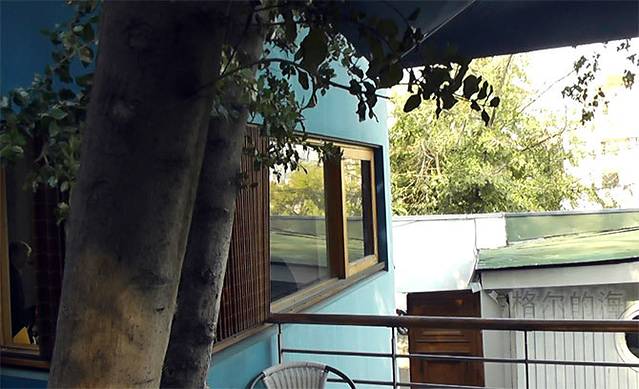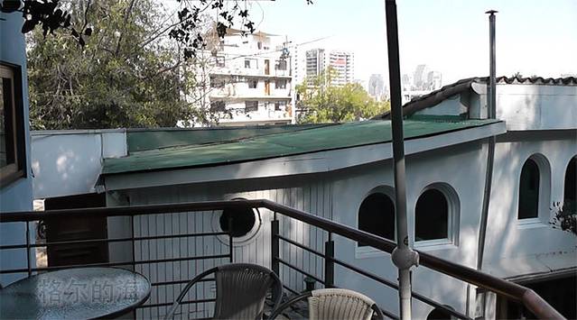 故居原先的客厅现在是Cafe,同时售卖聂鲁达的书、诗集、明信片之类的。很窄憋的空间,几个人就挤满了。楼梯上去,客人坐的满满的,吃喝甜点、咖啡,体验大诗人当初在这里居住的情形。从人堆中穿过,可以走上一个比较宽阔的阳台。从这里可以俯瞰故居的大院和远处的景色。