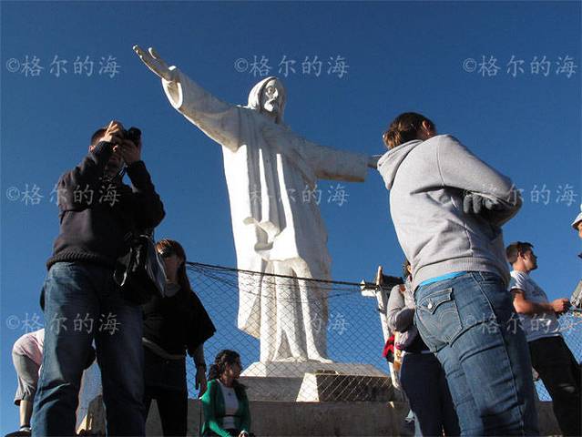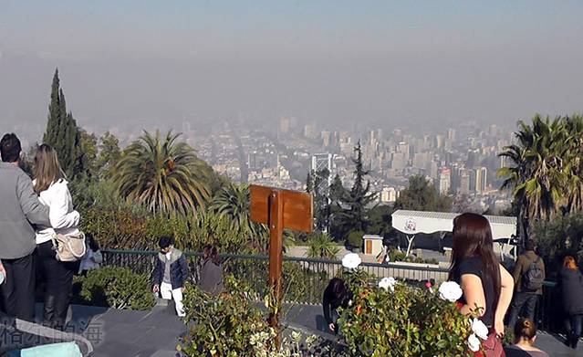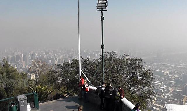 据说来这里观景,最好的时候是冬季、雨后的大晴天日子。我到的时候,是冬天,也是大晴天,却不是雨后。于是我看到了晴空万里下面浓重烟霾笼盖的Santiago,也让这烟霾档住的、朦胧可见的、远方山顶积雪的安第斯群山。不过我已经很满意了。面对这壮观奇幻的美景,我惟有说,圣城揽景,以此为最。不太容易描绘这种身临其境的满足感,只有亲自体会。这是大多数到过此地的游人的切身经验。真正好的景点,它具有这样的品质,就是你无法通过媒体去领略,非得亲临其境才成。跟许多其他人一样,我坐在圣母雕像脚下的石阶上,拍了几张照片后,什么也不做,就歪坐在那里,用全身心感受一种浑雄的、扑面而来的美好。坐了近一个小时。。。。。。