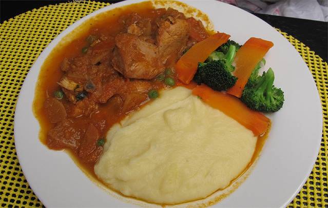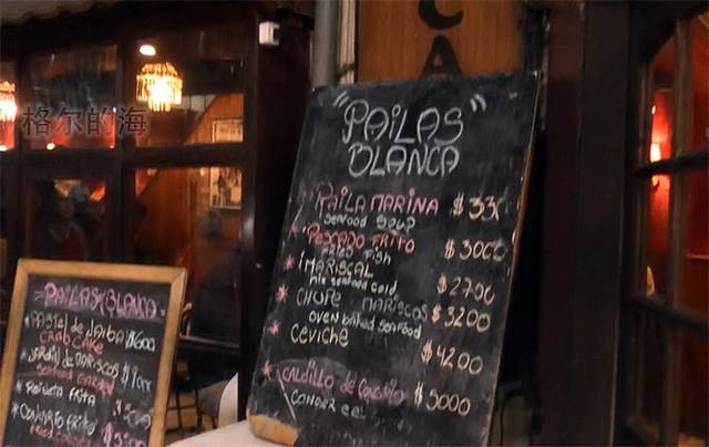 我们在这家Blanca Pailas饭店吃的午饭。还点了Paila Marina。这道Paila marina据说是智利名菜,翻译成中文就是“海鲜汤煲”,paila就是煲仔。汤料有洋葱、胡萝卜、辣椒、番茄,再加上几种海鲜——主要是智利贻贝(mussel)。似乎每一家饭馆都有这道汤煲。价格也便宜。注意,不是330,而是3300比索。还是便宜