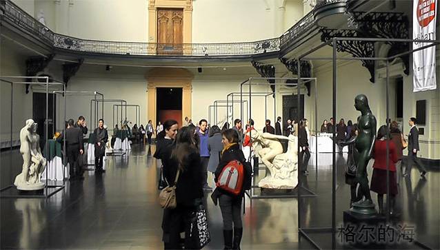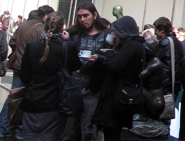 MNBA的内部装璜跟外观一样的堂皇和精致。我们进去的时候已经有很多人了。想不到还有免费的早点和咖啡。本来想问清楚这免费的吃喝是怎么回事,却见老婆和女儿一人已经拿了一块糕点、一杯热饮,在那里开始欣赏大厅里的法国雕塑了。