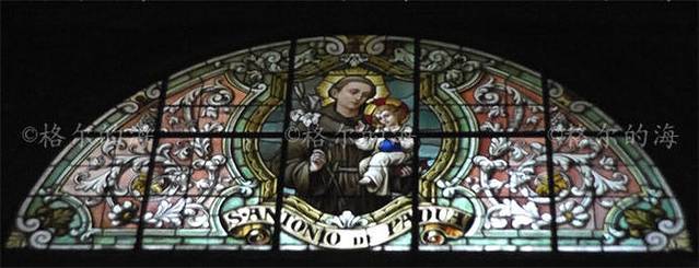 大教堂里的一扇彩绘,主角是里斯本的圣安多尼(Saint Anthony of Padua)。这位圣人也是西班牙人钟爱的保护圣人。丢东西的时候,常常就会呼求他的帮助。