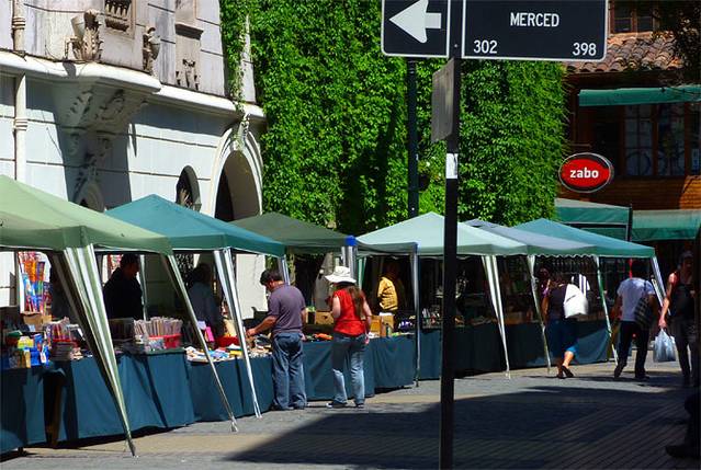 我们的目标是一个图书和古董集市,位于Lastarria的José Victorino步行街,界于rosal和merced街之间。这个集市每逢星期四、五、六开张,早上10点开始。我们去的时候正好是星期四,人不是很多。不过周遭的环境和氛围,还是很能衬托出小资情调的。书市边上就是视觉艺术博物馆(Museo de Artes Visuales)。