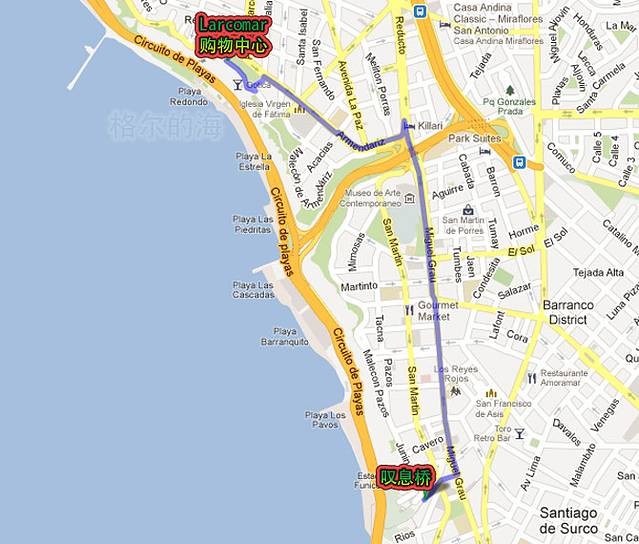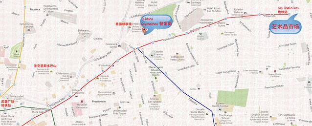 放一张地图。去Isidora Goyenechea街(图中蓝色标记)的话,就在半路下车(El Golf地铁站)。走几步就到。
