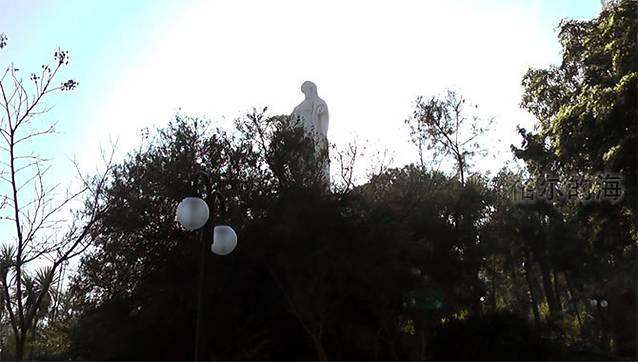 从登山铁道站台出来,看见树木葱茏,听见鸟叫虫鸣。抬头看见圣母玛利亚的立像探出树梢。走去立像所在的山顶还要爬几百级的石梯。那座法国人赠送的圣母雕像高14米,刚在2012年初油漆一新,泛出雪白耀眼的光芒。圣母像脚下的那个小房间,据说1987年4月教皇保罗二世来过,并在里面为Santiago城祈祷。不过我来圣克里斯多巴山(Cerro San Cristobal),主要为了观景远眺Santiago。