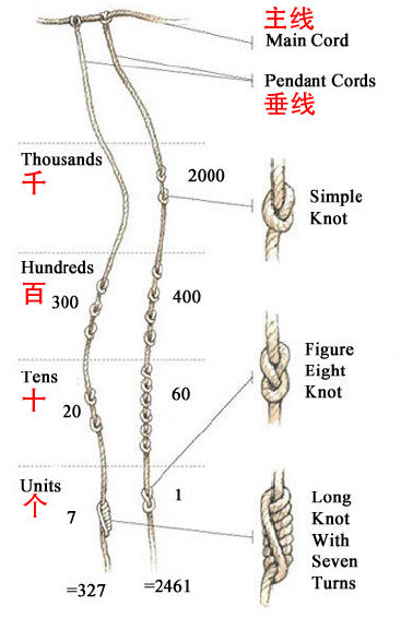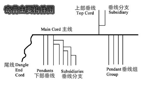 简单地说一说印加Khipu,它大致由以下图示中的组件构成。打个比方,如果英文仅用26个字母来组合优美的莎士比亚戏剧,那么理论上Khipu这些丰富的组合也足以达到同样的目的。