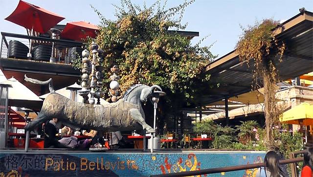 离开聂鲁达故居,我们开始慢慢地步行去山脚下的Barrio Bellavista。这个区跟接下来我们经过的Barrio Lastarria区,是所谓的Boho区。打个比方,类似布宜诺斯艾利斯的那个Palermo Soho(巴勒莫苏豪区,我在阿根廷游记里有介绍)。Boho是什么?简单来说,它是Hippie或者Bohemian的同义词。不过要分清Boho与Bobo的区别:-) Barrio Bellavista以夜生活丰富出名。我们去吃饭的Patio Bellavista周围有不少的饭馆和酒吧。酒吧里晚上表演tango。没看,因为在tango故乡阿根廷看过了。所以不知道智利tango的表演水平怎样。