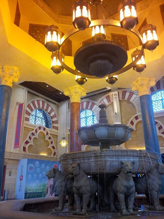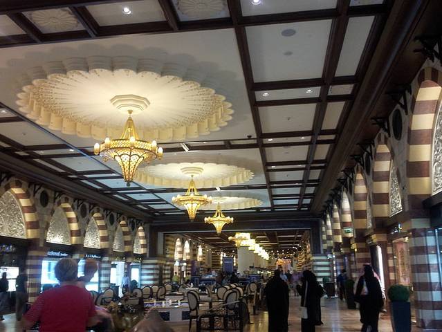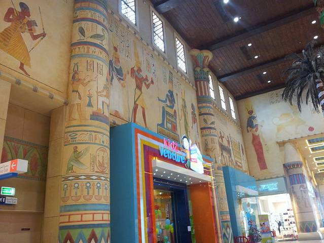 购物中心,是迪拜的名片。就算不打算购物,也一定要去逛下。很多酒店都有免费接送到购物中心的巴士。购物中心里边大得吓人,最值得去的,有这么几家。一是Dubai Mall,这是最大的购物中心,1200多家店铺,完全逛不完,里边还有一个硕大的水族馆。晚上,这里有非常壮观的喷泉表演。虽然喷泉表演很多地方都有,但是阿拉伯人就是有办法让你惊艳。而且,这里紧挨着迪拜塔(哈法利塔),所以,一定值得来下。第二家是阿联酋购物中心,这里有一个室内的滑雪场,而且从这里打车去帆船酒店最方便。第三个购物中心,是在城市西边的伊泰 本图塔购物中心,这里虽然不及前两个高档,但是内部的装饰非常有特色。分别有埃及馆、中国馆、中东馆等,里边及其富丽堂皇,只是看装饰也是值了。而且,停在购物中心前的高级跑车,也是这个国家的特色。至于东西嘛,就奢侈品而言,迪拜是免税的,它的价格,位于香港和欧洲之间,换言之,比香港便宜,但比欧洲贵。