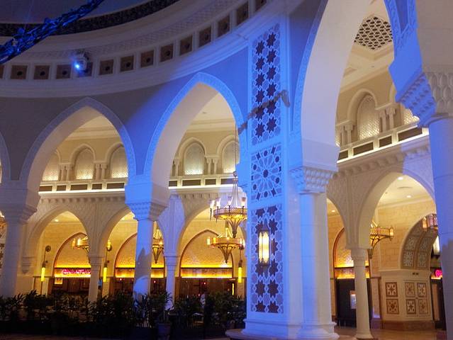 如果要进入帆船酒店,只有一个方法,入住或者吃早餐/下午茶,都是价格不菲。大部分人,还是和它来张合影就可以了。我的玩法是这样的,地铁到阿联酋购物中心,打辆车,请他先去到帆船酒店的正门,下车拍照(此处是正面照),然后上车,请他去朱美拉公共海滩public beach,从那里,可以照张帆船酒店的侧影,是很美的。这样打车也就20迪拉姆左右。公共海滩海水清澈,很多西方人在冲浪和滑板,很值得流连一段时间。然后可以步行去到朱美拉清真寺,就在很近的距离,是很美很圣洁的白色建筑。有定期开放的时间,可以入内参观的 。如果能走,其实步行10分钟,就能去到附近的朱美拉集市,都是传统的阿拉伯手工艺品,很值得一逛。