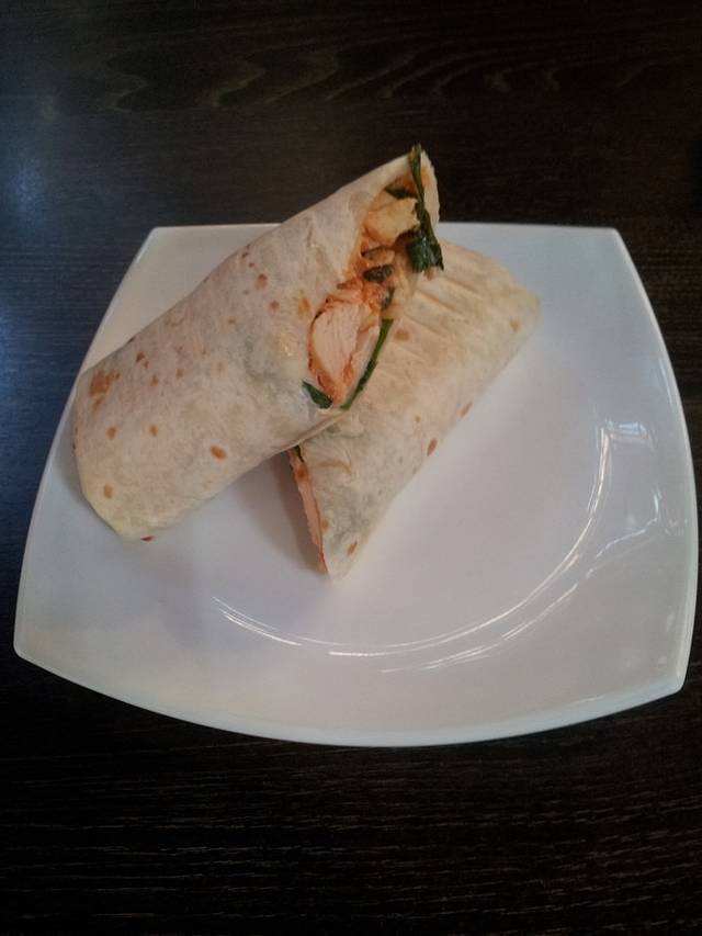 一种当地的食物,鸡肉卷。阿拉伯红茶还不错,但是甜点就太甜腻了