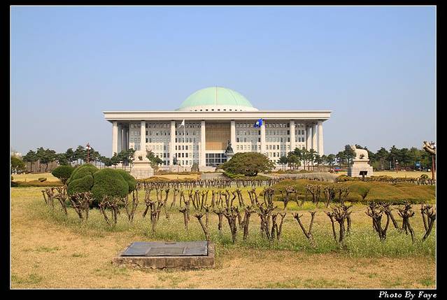 经过国会议事堂附近,居然出现一座很新的韩屋,不知道是否有人居住,这里属于闹中取静的,地段相当不错,据说首尔房价最高的区域,就是汝矣岛上。
