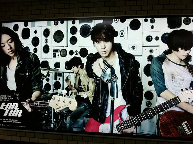 走在地铁中,无意间看到了CNBLUE的巨幅海报,他们正巧在打歌宣传新专辑。