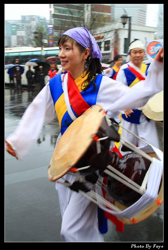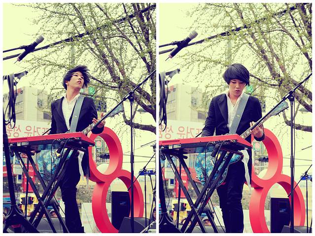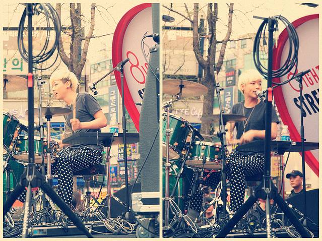 街头公演是韩国的特色,CNBLUE也是从弘大街头公演开始的。震耳欲聋的音响,rock主唱,边弹边唱,虽然他的音乐风格不是我的菜,但欣赏他们为了自己理想努力的样子。