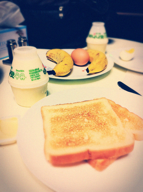 早餐比较简单,有鸡蛋,水果,面包和咖啡,妈妈不喝咖啡,所以购入风靡一时的香蕉牛奶。