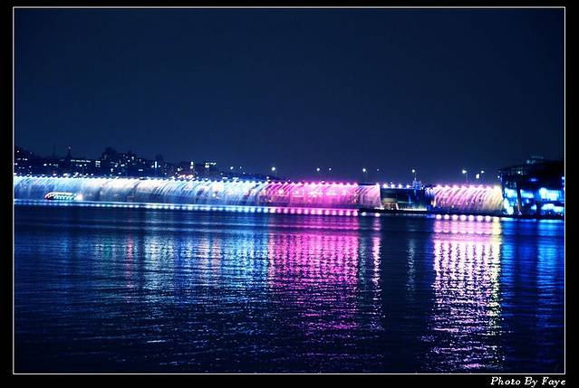 说到这个月光彩虹喷泉,第一次去韩国时,误以为晚上一直会有喷泉,晚11点到达后,失望而归。第二次去韩国,事先了解了时刻表,但走错地铁出口,待一路狂奔到喷泉时,已经不再喷水了。。。只能在狂奔的途中留下几张照片~