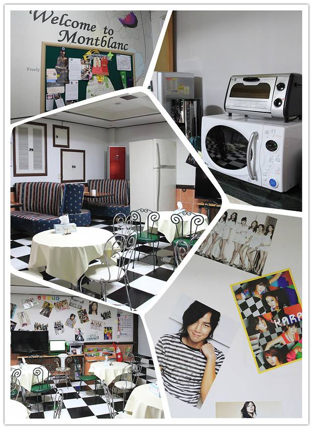 旅馆的餐厅,可以免费上网,墙上贴着韩国爱豆的海报。