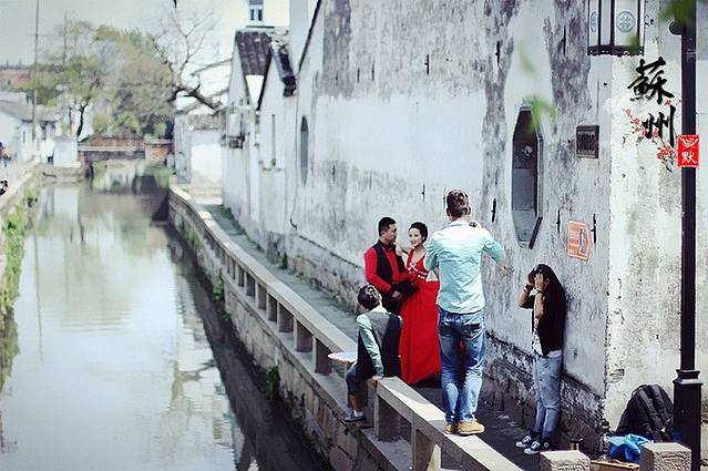 不少新人在这里拍摄江南韵味的结婚照,花飞满天,横空双燕,最难得最美满莫过于碧落黄泉仍十指相牵