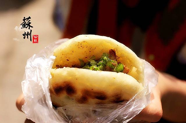 一路上,到处都是小吃摊贩,空气中弥漫着糕点甜香。苑苑饿得不行,停下来买了个肉夹馍充饥(见下图),我就顾着在前面拍照。接下来便发生了游记开头我提到的 “ 肉夹馍事件 ”。由于苑苑要吃东西,两个小6都放在我这里,用心拍照的我过于专注眼前的事物,全然忘记还要给食物留影。苑苑一边吃一边拿着肉夹馍走到我面前道:“亲爱的,快点帮我拍一下。” 我当时条件反射的以为,是不是肉夹馍里面吃倒不干净的东西,或者柳絮飘进去了,于是伸出手就要去拍打。但是又不知道应该拍哪里,心想万一我的手把食物弄脏了就不好了,便十分认真的问苑苑 “ 浪个拍?(怎么拍)”。“ 你说浪个拍嘛,喊你拍它呀!” 苑苑十分不屑的回答。“ 晓得呀,问题是要拍哪里呀?” 我还陷在自己的思维中无法自拔。“ 我喊你拍它呀。。哇哈哈哈。。。” 然后就看见苑苑十分无语的坐在石墩上笑得不行。我依旧满脸狐疑,搞不懂她在笑撒子(什么),不明白她到底是何欲意。“ 老子喊你拿相机给它拍照,不是喊你拿手拍打!!!” 苑苑几乎是用最后的一丝力气来为我“指点迷津”,她差点就在人来人往的平江路上笑背气……哈哈哈……恍然大悟后我也笑到不行……事隔如今,每每回忆起这次“ 肉夹馍事件 ”,我都觉得匪夷所思。我觉得当时我的脑袋不知是被驴踢了,还是被门夹了,总之脑花是散的。不然我怎么会做出这等荒唐的举动,简直是我人生中的“ 败笔 ”,思量,思量,焉得不思量?O(∩_∩)O哈哈~