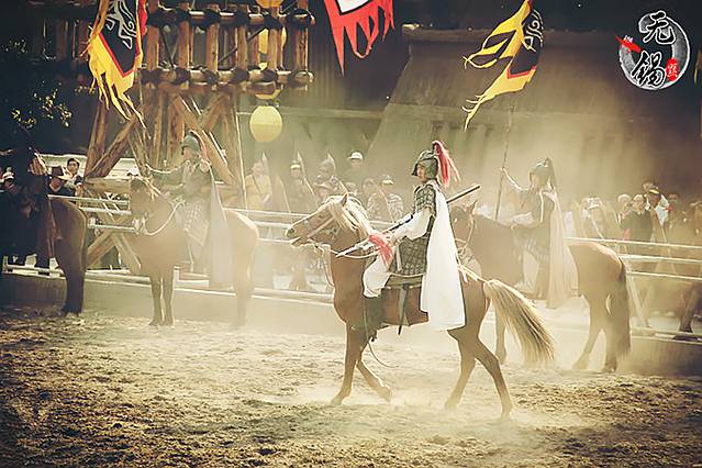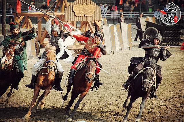 下面是桃园附近跑马场参加《三国演义》实拍的影视马术特技队每天为游客真枪实刀地表演——三英战吕布 。每天两场表演,分别在上午10:00和下午4:00,时长15分钟,感兴趣的朋友注意安排好时间。