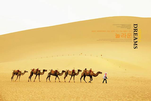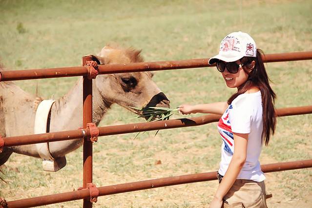 匆匆留了下影,我们便继续前行。老爹把我们带到了一个新开发的景点,确切的说应该是我们去的第二天才正式挂牌的景点——西部风情。说实话,真坑爹!我们一行4人一共被宰了500元。(其中一位是来自郑州的朋友,途中偶遇,一天耍完东西线,强!)那个做推荐的女的拿来手机给我们看某某女子照的照片,而且保证没有被P过。她会告诉你,小公园只需要60元/人,但是跨出那道门后,才能看见绝美的美景,什么张骞出塞时所指的汗血宝马的后代,什么世上已所剩不多的野生骆驼,反正吹得是此景只应天上有,宛如仙境落凡尘的境地。其实,我们大家都不抱太大希望,但是