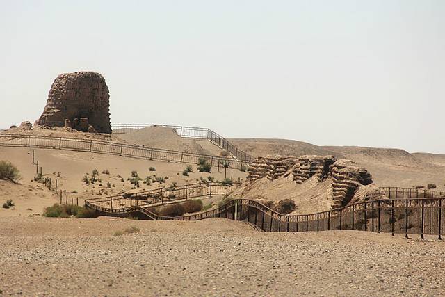 玉门关又称小方盘城,建于公元前111年左右。为丝绸之路通往西域北道的咽喉要隘,位于敦煌城西北90千米处戈壁滩中。