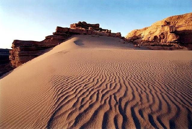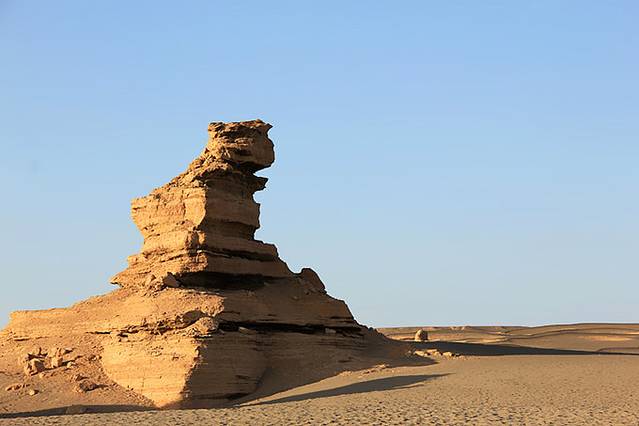 雅丹国家地质公园位于我国著名历史文化名城敦煌市西北约180公里处,它主要由风蚀作用形成的雅丹地貌景观。地质公园内集中连片地分布着各种各样造型奇特的风蚀地貌,例如,“蒙古包”、“骆驼”、“石鸟”、“石人”、“石佛”、“石马”等,千姿百态,惟妙惟肖。它宛如一座中世纪的古城,世界许多著名的建筑都可以在这里找到它的缩影,令世人瞠目。夜幕降临之后,尖厉的劲风发出恐怖的啸叫,犹如千万只野兽在怒吼,令人毛骨悚然,也因此得名“魔鬼城”。