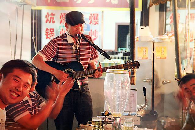 回到敦煌已经12点,同lily他们告别后恨不得立马躺在我那大床上,昏天暗地的睡上一觉。可是老爹似乎还没尽兴,他说夜生活才刚刚开始,非让我陪他去夜市喝一杯,不然他没精神开车,晕,这是哪门子逻辑,我打死不干。老爹又扭着我好说歹说了半天,实在熬不过他的嘴皮子,只好舍命陪君子了。我们来到一露天夜啤酒,老板已经和老爹十分熟悉,他们用本地话唧唧歪歪的聊着,然后时不时看下我。这让我感觉很不自在,突然想起了sukey游记里面的情节。靠,我是不是想太多了~o(╯□╰)o