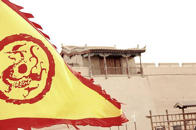 没过多久,我们便来到了鸣沙山的侧门,坐滑翔机的地方。刚走出十多米,便被一位年约五十的工作人员叫住了,小丁老板连忙解释我们只是来坐一下滑翔机,坐完就走。很显然,这完全不是理由。我们花了一些口舌还是不起作用,打算放弃。可是小丁老板不妥协,说是认识这人十多年了,以前也出现过这样的情况,今天是故意刁难,想捞油水来着。但无论小丁老板怎样软硬兼施,都无法说服他。我们决定让小丁老板去补票,我们原地等候。没想到那人依旧不同意,非让我们出去不可。后来竟然开始骂人,小丁老板被气得不行,争执越发的激烈,最后竟然打起来了( ⊙o⊙ )!一看这架势,我们三连忙拉开这俩,正门进就正门进吧。这一出搞得我心里很是过意不去啊,直接回旅舍准备去西线吧。不过也是这一出,拉近了我们三的距离,成为了朋友。发现彼此回兰州的时间是同一天,于是她们热情的相邀我一块同行。哈哈,我有伴了,之后的住行安排也都是她们在负责,让我好是省心,专心照相专心玩就是。╭(╯3╰)╮