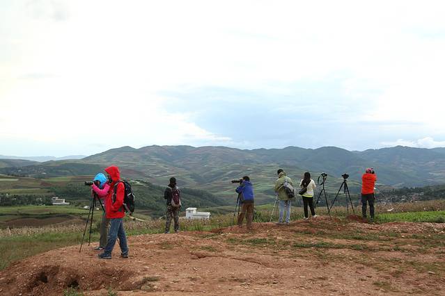 来红土地的都是摄影爱好者,走到每个景点都见背着“长枪短炮”的摄影人。那天是阴天,偶尔从云层缝隙里透出点阳光,到了夕阳时分看着好像要放晴,却总不见阳光。一群“好摄之徒”却一直占据着有利地形久久不愿离开。