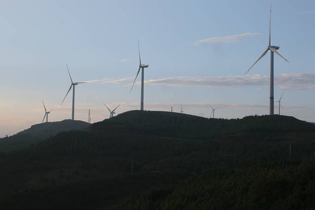 山顶上的风车也不约而同停了下来,静静迎接朝阳。