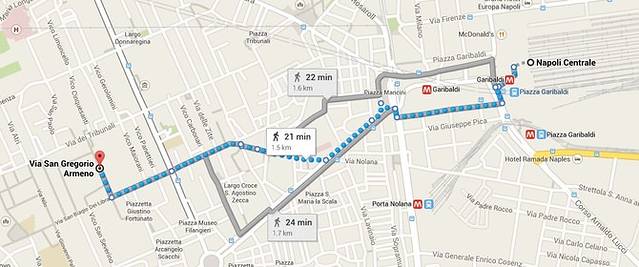 从那不勒斯中心火车站步行约二十分钟即可到达。由于市场位于老城的街道中,相对狭小,乘坐公共交通不方便,建议步行。具体路线见下方地图。
