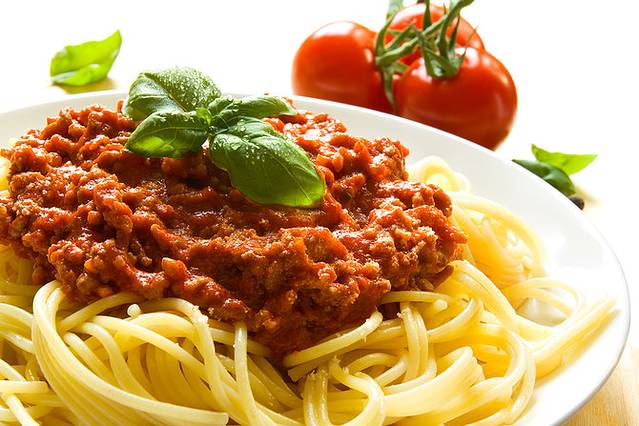 这是很多人印象中的“意大利肉酱面”,然而在意大利本土,这个组合是不合理的。这道菜的肉酱起源于Bologna,位于意大利北部,而Spaghetti是南部的典型pasta。其次,因为Spaghetti 细长,表面挂不住任何的肉酱,所以肉酱面中使用的意面,应该是表面比较粗糙,容易挂住肉酱的种类,比如最典型的Tagliatelle或Pappardelle。