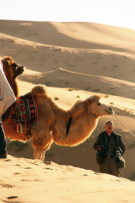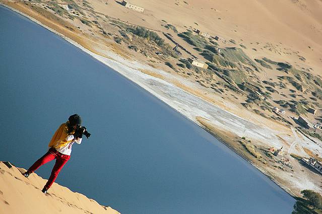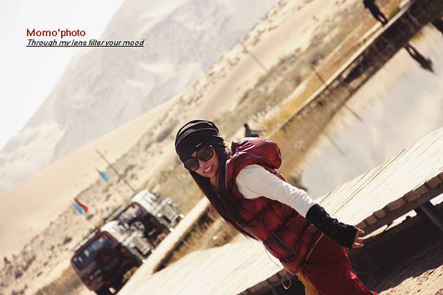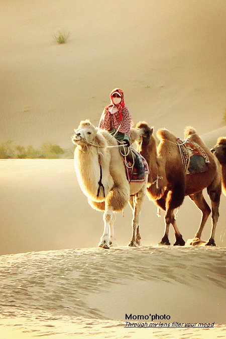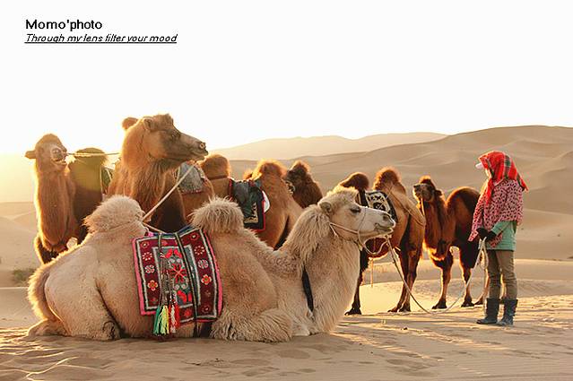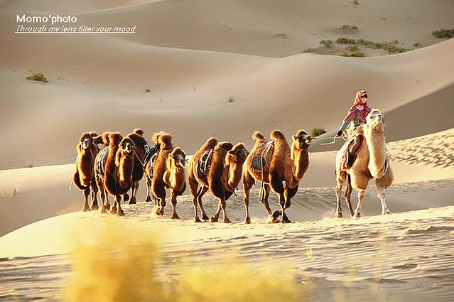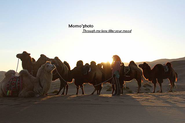 一群摄影人士花钱雇了一姑娘赶骆驼群,让她不停在湖边徘徊照日落。我立马下车去拍,捡了个趴活\(^o^)/~~我听见那女子很无奈的抱怨:“还要走一遍啊,都走了好几次了……”
