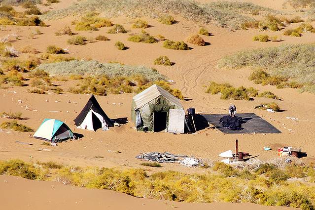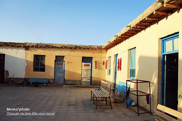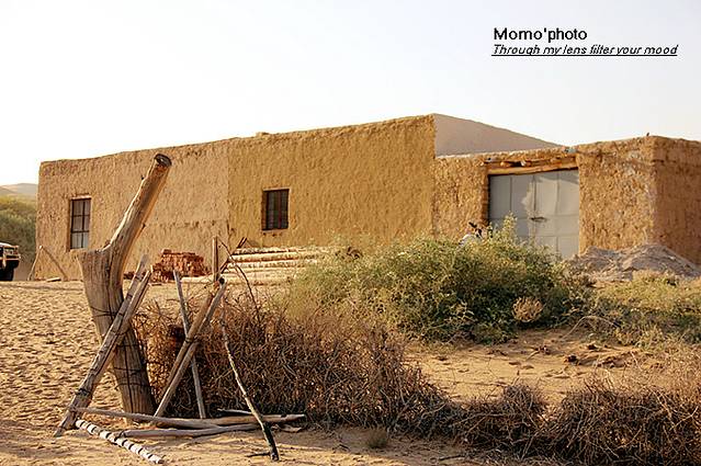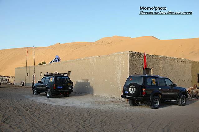 总之,除了一瓶开水,神马都没有鸟。我们男女同胞各睡一间屋,那个门还是烂的,只能用床铺抵住。厕所呢,在土房子外面不远处,一男一女。置于饭菜嘛,又贵分量又少,感觉我们大家都在省着吃,饭还是夹生的,⊙﹏⊙b汗。不过这也可以理解,本来沙漠里面运输都麻烦,再加上方圆几十里就这一地儿,该他拽!