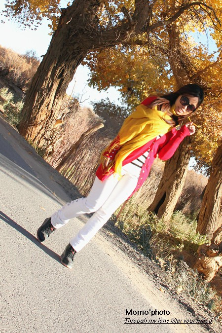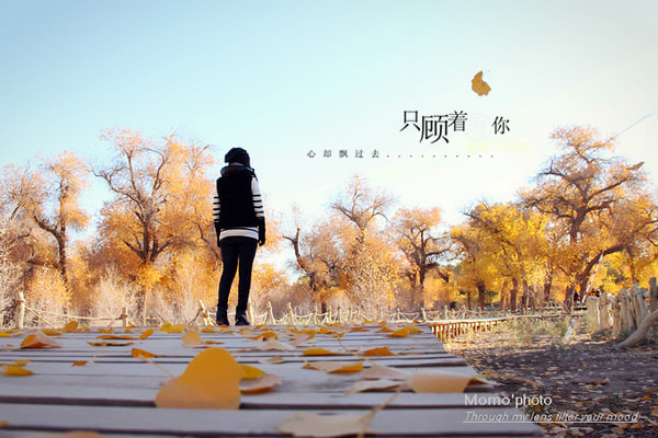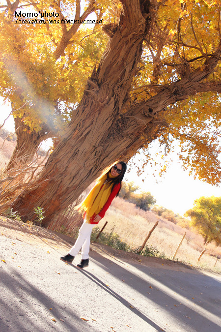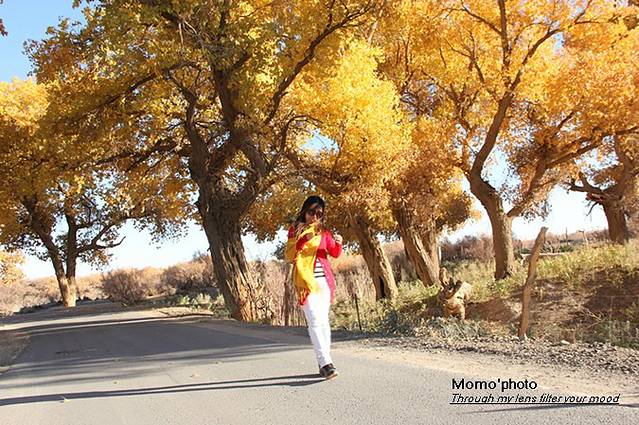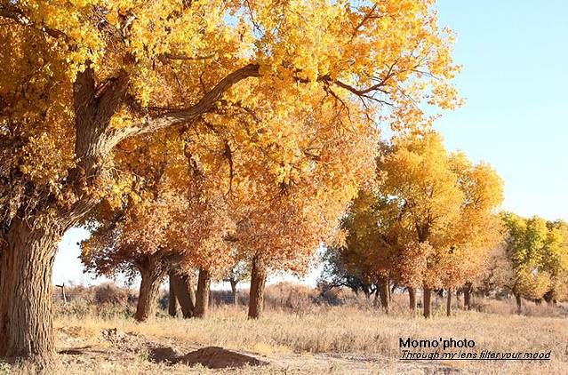也不知道这样浑浑噩噩的睡了多久,我模糊中看见一片黄,精神一下子就抖擞起来。已经到达额齐纳旗了,还好,叶子还没有被风吹掉光。