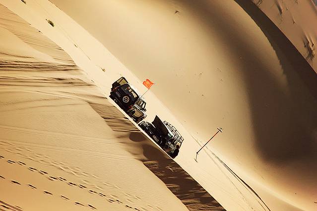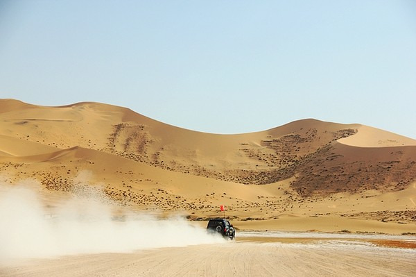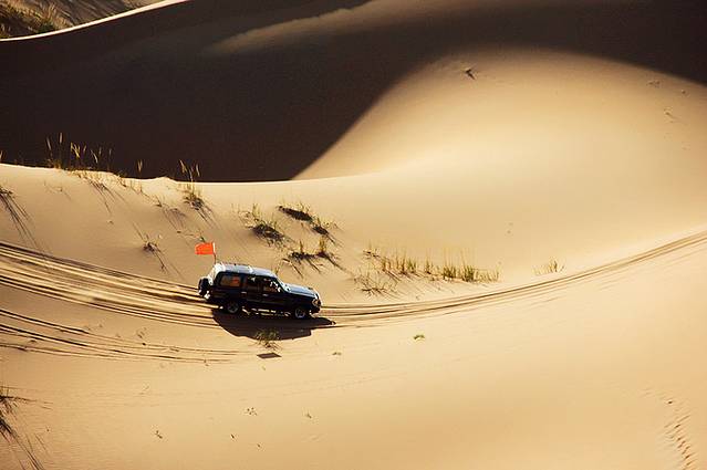 进沙漠的越野车通常有竿旗,我们的上面写着:“大漠兄弟连”。我喜欢这个霸气侧露的名字,看着这杆旗,脑袋里就出现“落日照大旗,马鸣风萧萧”之类的句子。