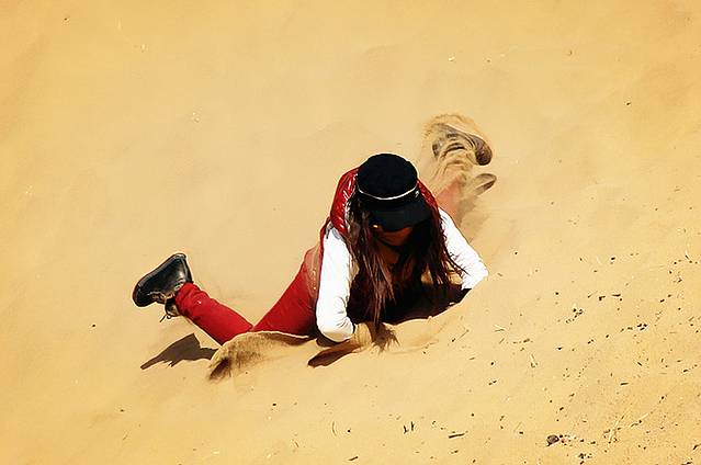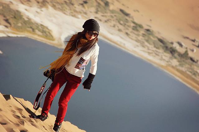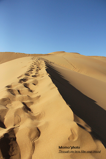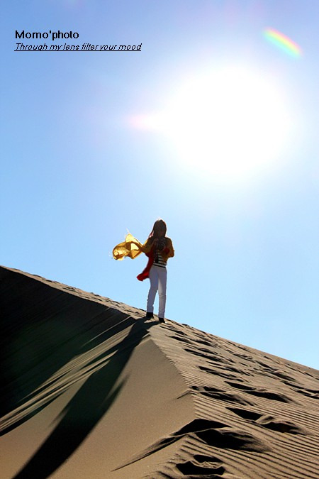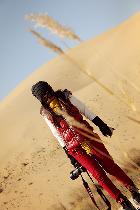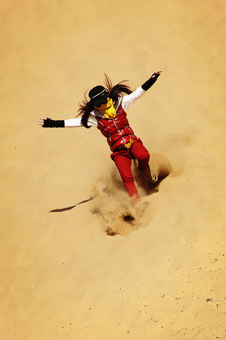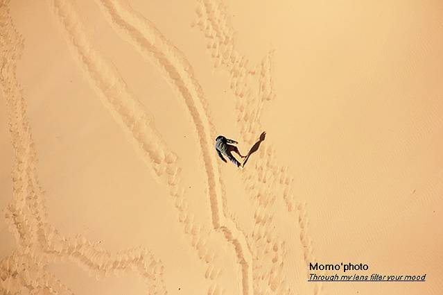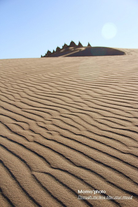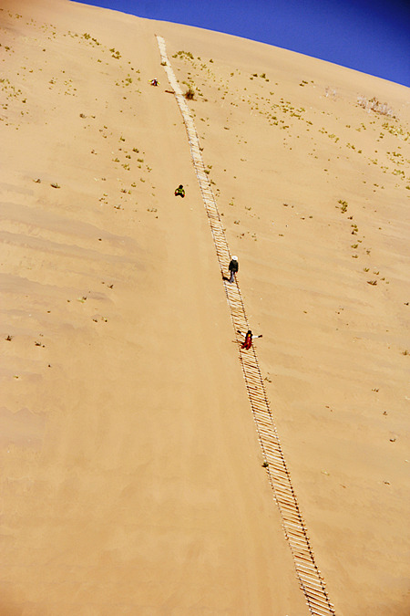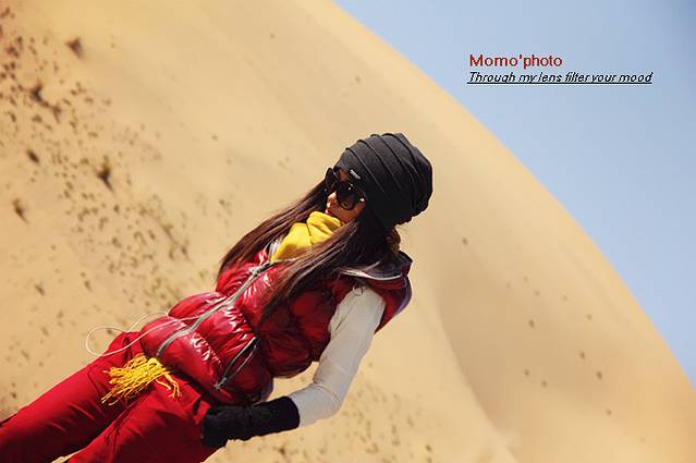 这次体会倒了爬沙漠的劳累,像是脚上拴了两块大秤砣,举步艰难啊。不过我还是爬上顶部体验了一把大漠狂沙,沙子有一定的温度,但不烫手,很细很滑,无孔不入,钻得我全身都是。
