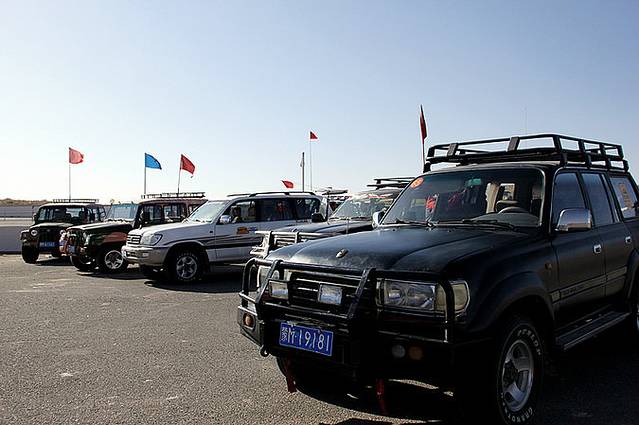 这一大半天时间几乎又是在车上度过的,到右旗已经下午。因为是唯一一班开往右旗的车,车上很轻易的约好了一起包车去巴丹吉林的伴。4人坐丰田越野,我们共8个人,两个车,一个车2000元。