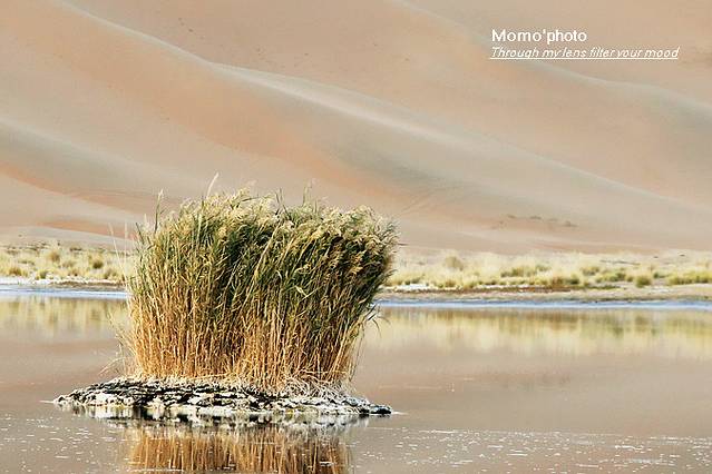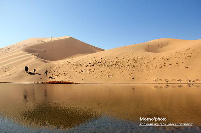 巴丹吉林的湖虽然多,但并不是每处有水的地方都可以被称作绿洲的,仙女湖就是绿洲中的典范。这个湖之所以被称作仙女湖,是因为它的形状像仙女的侧身。而且,在肚脐眼儿的位置,还有一眼泉呢! 由于有了泉,仙女湖成了一个咸淡混合的湖,也有了成为绿洲的条件。不过,我是没有看出来。