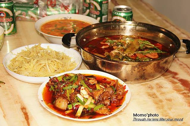 还是我们川菜巴适呀,吃得我们撑到不行。小胖特别可爱,因为老板他们觉得他营养过胜,不准他吃甜食和肉。他看见一桌子的丰盛,直吞口水,不停的问“这是啥,这是啥?”张同学特别讨厌,明知道小胖吃了会被教训,还故意引诱别个“来嘛,吃嘛,好吃得很哦,我们不得给你爸爸他们说。”于是小胖没能经得起诱惑,终究还是破了戒,他时不时借上厕所之名,出来偷吃一块,吃了还不忘漱下口,问我们有木有气味。然后,就听见卧室内传来老板惊讶的责备:“你今天怎么回事,这么不懂事,老是和哥哥姐姐争厕所,拉肚子了麽”O(∩_∩)O哈哈~