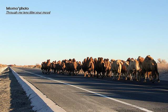 回程中看见了概率微小的赶驼人在马路上赶骆驼群