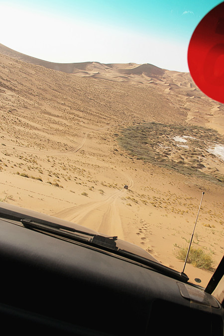 快出沙漠了,加木苏师傅他们开始试车,我又嚷嚷着跟倒去刺激了一把。看见这高度了吧,好说也有一两百米,我们就从最高点冲刺下来的。因为坡度太斜,车子还得从后面绕好大一个圈,才能到顶端,而且人还不能多,多了也上不去。经过那次”惊魂7秒钟“后,我的胆子已经锻炼得老大了,我专门坐在副驾,嗨惨老的。至于那感觉,只可意会,不可言传,自己去体会吧!(表要拿砖头拍我)