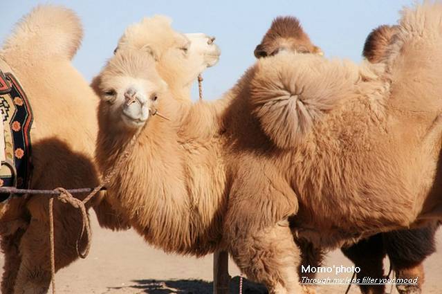 我们先去的八道桥,这里主要是沙漠,巴丹吉林沙漠的一小部分。让我特别兴奋的是这里的骆驼,又大又肥,毛毛长得很,比起甘肃的真的要萌太多,激动得我手舞足蹈,想切抱它们得很╭(╯3╰)╮不知咋的就喊成“驼骆,驼骆,我要骑驼骆!”发财哥又趁机调侃我一番“陀螺是用来掺的,不是用来骑的,你倒是骑给我看看”囧……口误,口误,硬是骆驼,陀螺傻傻分不清楚咯。