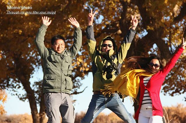 清晨7点多,我们向胡杨林出发。相信大家都看过《英雄》吧,张曼玉与章子怡一战,让额齐纳胡杨林名扬天下。心里莫名的激动起来,撒样子,撒样子,叶子会不会掉光了,额齐纳会不会只是一个传说……(插播一下,出门时,让他们等了我10分钟,结果不用我说你们也猜倒了撒,被那个姓张的念死了)